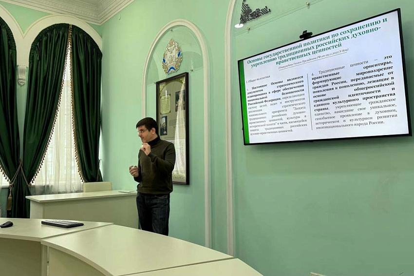 В рамках установочной лекции Роман Андреевич рассказал о государственной политике в сфере сохранения традиционных российских ценностей, о взаимосвязи этой политики с рядом стратегических вопросов развития государства, а также предложил своё понимание некоторых основных духовно-нравственных ценностей.