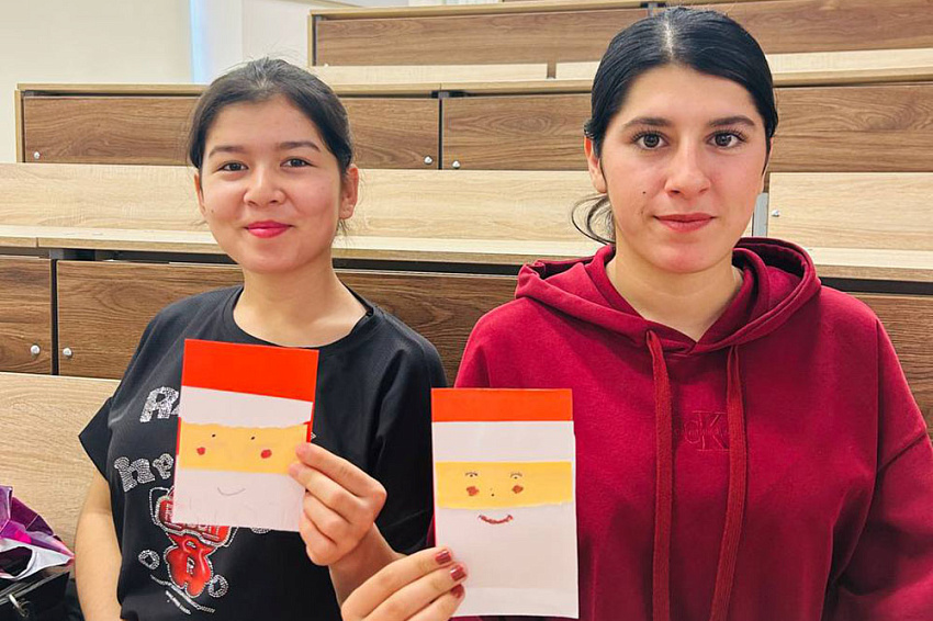 После активной части праздника наступило время для творчества. Под руководством кураторов иностранные студенты с большим энтузиазмом мастерили праздничные открытки, которые станут важным воспоминанием о первом русском Новом годе.