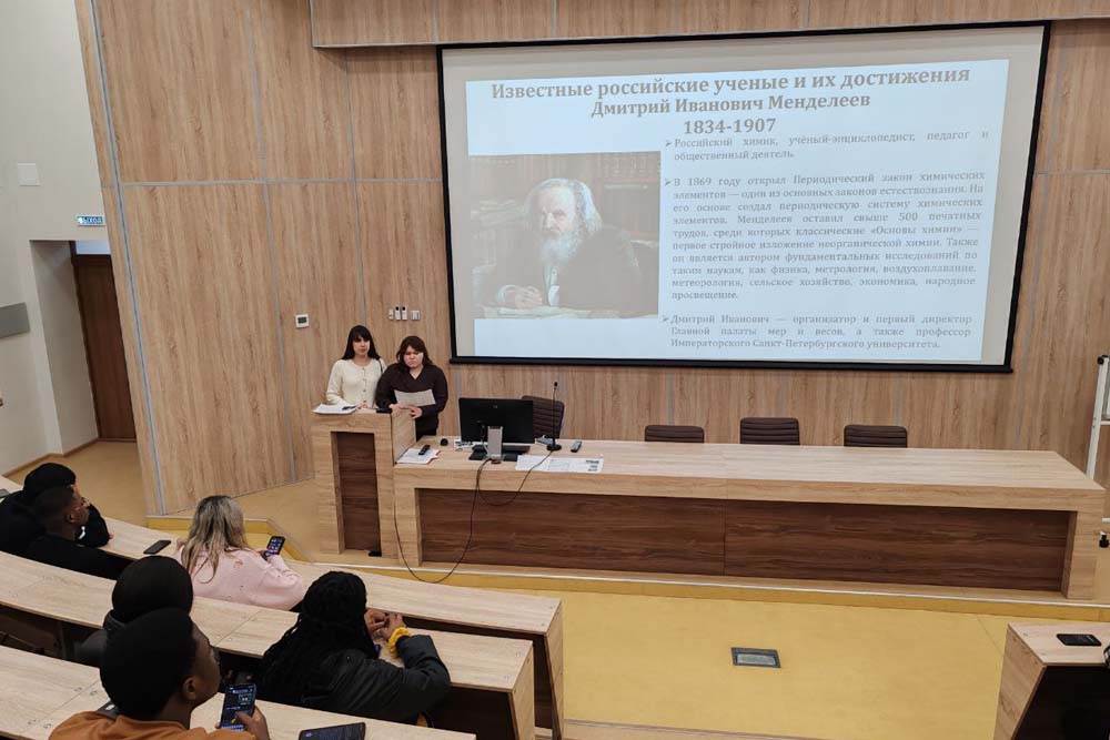 Особенностью встречи стала вторая часть, где инициатива перешла к иностранным обучающимся, изучающим мировые научные традиции. Они подготовили мини-презентации о выдающихся учёных своих родных стран, чьи работы оказали влияние на мировую науку и технологический прогресс. В аудитории прозвучали имена известных деятелей из Алжира, Нигера, Анголы. Студенты рассказали не только об открытиях, но и о том, как эти достижения повлияли на развитие их стран и вдохновляют их лично на учебные и научные поиски.