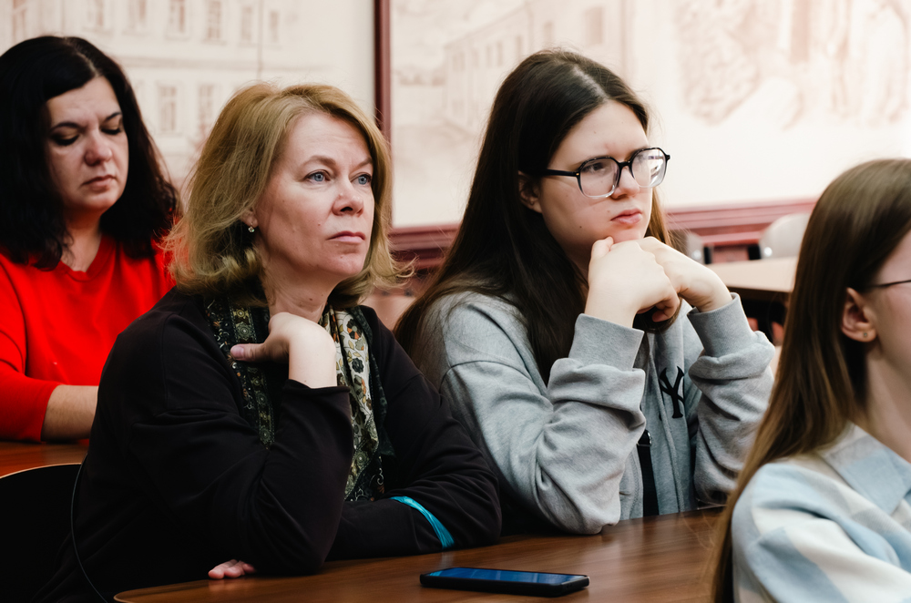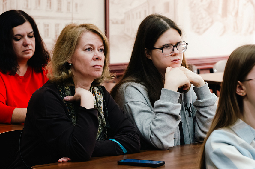 Особую атмосферу создала экскурсия по зданию института, во время которой гости узнали любопытные факты из истории здания на улице Преображенская – в прошлом мужской гимназии, открытой по указу императора Александра II. Ребята посетили именные и тематические аудитории.