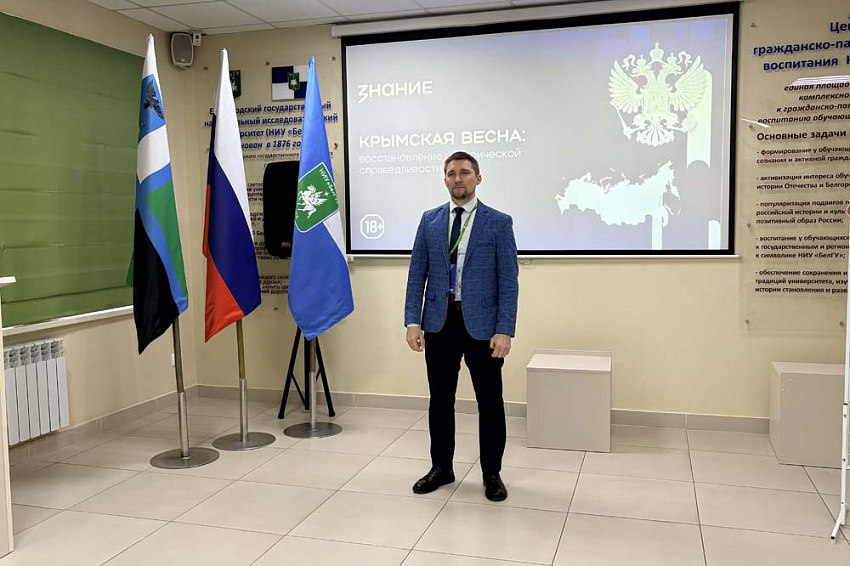 С лекцией об истории Крыма и важности этой территории в составе России рассказал и.о. декана историко-филологического факультета, лектор Белгородского отделения общества «Знание» Сергей Прокопенко. Он рассказал о том, какие войны за территорию Крыма известны истории, какое стратегическое и экономическое значение имеет полуостров, а также о том, кто в разные эпохи жил на территории Крыма. Также лектор обозначил предпосылки для возвращения Крыма в состав РФ и ход присоединения территории.