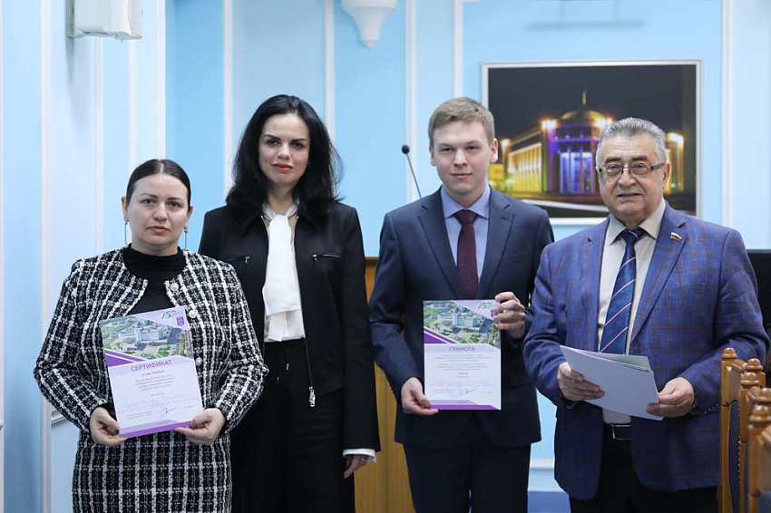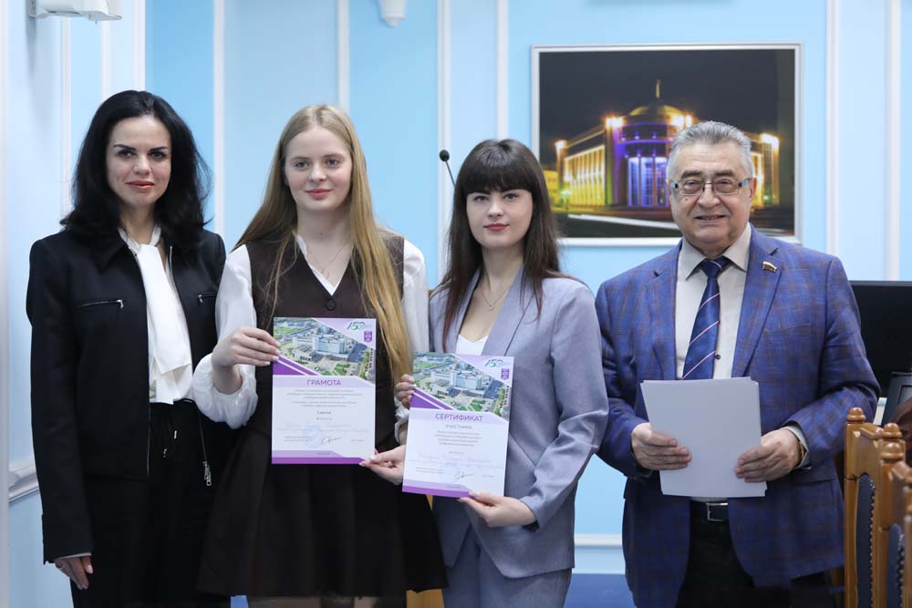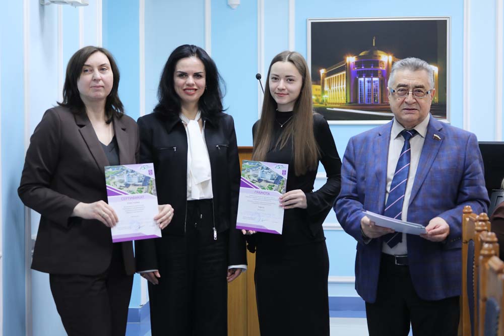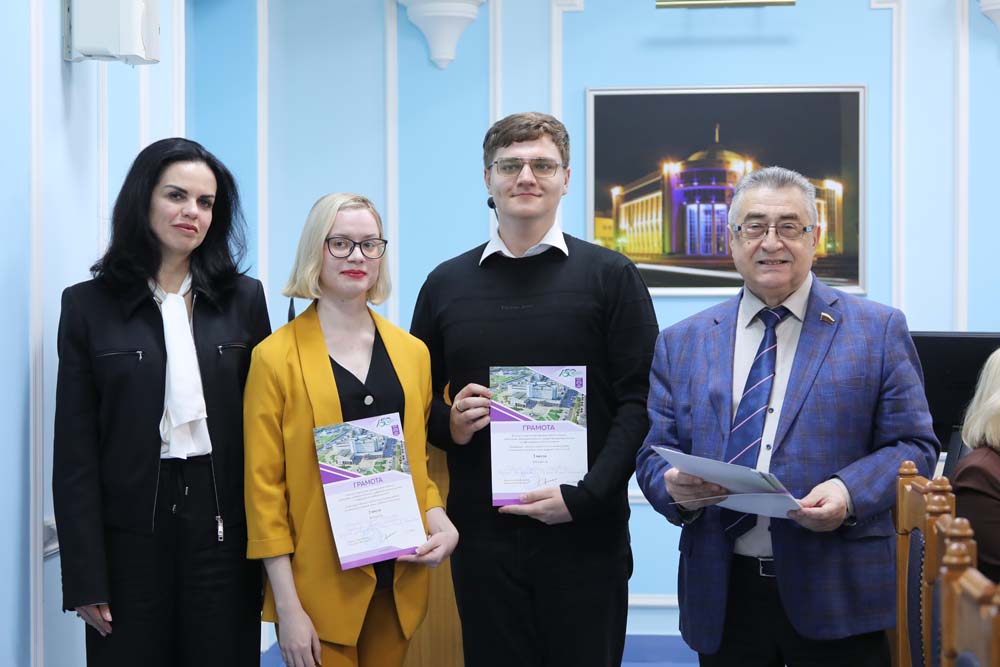 Пленарное заседание круглого стола началось с объявления победителей и призёров межвузовского конкурса студенческих научных работ. Дипломы отличившимся молодым исследователям вручила проректор Елена Скрипникова.