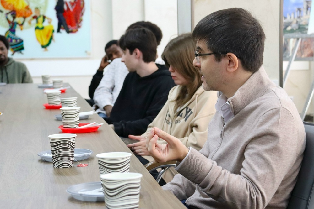 Студенты из России, Анголы, Бразилии, Буркина-Фасо, Нигерии, Туркменистана, Узбекистана, Чада, Эквадора получили возможность в неформальной обстановке пообщаться с политологом, старшим преподавателем кафедры международных отношений, зарубежного регионоведения и политологии ИМКиМО НИУ «БелГУ», руководителем проекта «Открытая аналитика», членом Клуба Горчакова, лектором Российского общества «Знание», экспертом региональных и федеральных СМИ Романом Травиным. Модератором встречи выступили сотрудники Международного информационного центра НИУ «БелГУ»: директор Ольга Лютова и специалист Арина Шестакова.